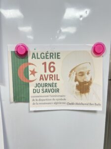 Aujourd’hui, le 16 avril, à l’occasion de la Journée du savoir, les élèves ont découvert l’importance de cette journée. J’ai partagé avec eux une courte biographie du grand savant Abdelhamid Ibn Badis.