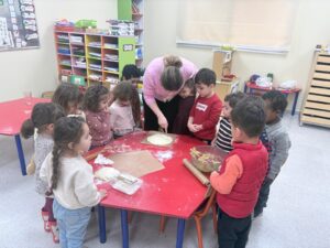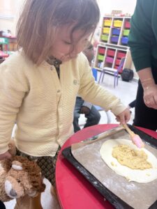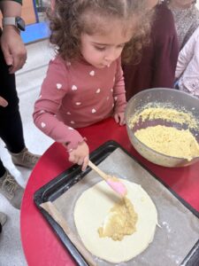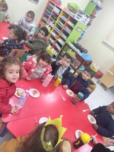 Les élèves de petite section ont participé à un atelier de cuisine au cours duquel ils ont confectionné une galette des rois. Dans une ambiance chaleureuse, ils ont découvert les ingrédients, appris le vocabulaire lié à la recette et manipulé différents ustensiles. L’atelier s’est conclu par la dégustation d’une délicieuse galette partagée lors du goûter.