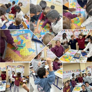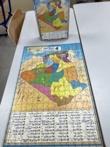 Les élèves ont tout d’abord réussi à mettre en place un puzzle de la carte de l’Algérie, avec les villes indiquées en arabe. À travers cette activité, ils ont pu apprendre les 58 wilayas en arabe ainsi que leur situation géographique.